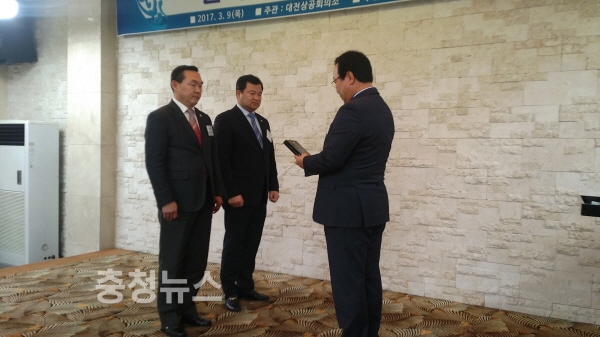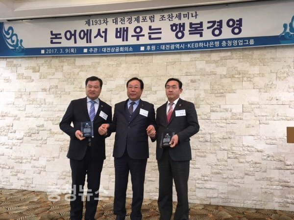 대전광시의회 박희진 의원(대덕구1, 자유한국당)과 송대윤 의원(유성구1, 더불어민주당)은 지난 9일 대전상공회의소(회장 박희원)로 부터 대전시 중소기업제품 구매촉진 및 판로지원 활성화 공로로 감사패를 받았다.