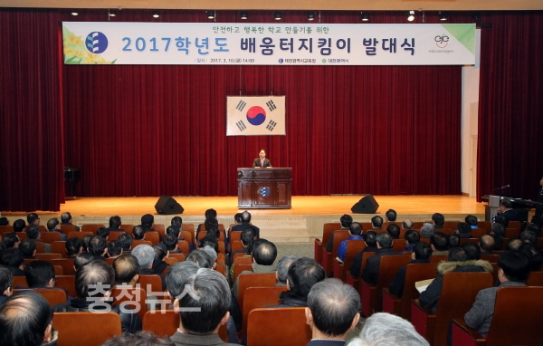 대전시교육청 설동호 교육감은 10일 시교육청 강당에서 안전하고 행복한 학교 만들기를 위한 '2017학년도 배움터지킴이 발대식'을 개최했다.