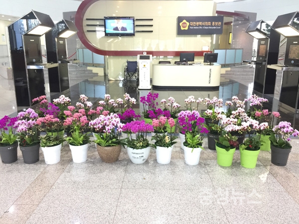 대전시의회(의장 김경훈)에서는 13일 관내 화훼농가 지원을 위해 꽃화분 등을 구입해 시의회 사무실 등에 비치했다.