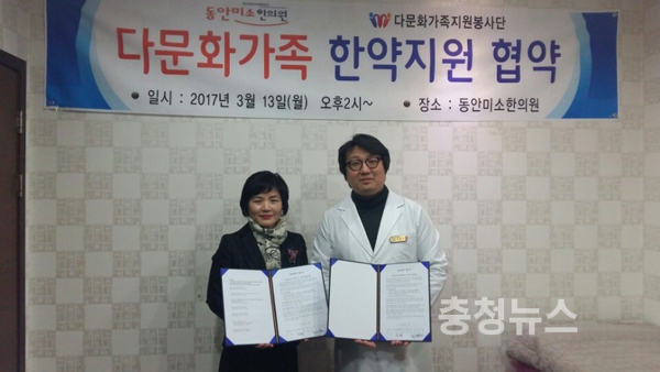 대전 동안미소한의원(원장 김진혁)은 사회공헌사업의 일환으로 다문화가족지원봉사단(단장 김남숙)과 업무제휴 협약을 체결했다고 밝혔다.