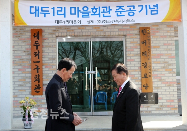 이세구 이장은 “우종재 의장은 평소 부석면의 발전을 위해 많은 관심을 갖고 노력을 기울였으며 대두1리 경로당 신축을 위해 아낌없이 지원해주셨다.”며, “고마운 뜻을 담아 감사패를 전달한다.”고 말했다.