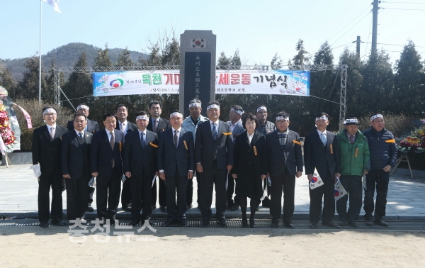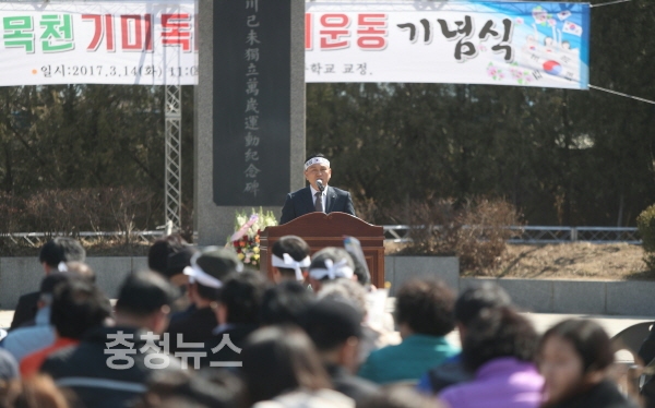 이날 기념식은 기념사업회(사무국장 신현대)의 경과보고, 독립선언서 낭독, 비문낭독, 기념사업회장 기념사, 축사, 3.1절 노래제창, 만세삼창 등의 순으로 진행됐다.