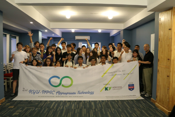 제2회 KY-NPIC 적정기술 캡스톤디자인아카데미 성공적으로 마친 뒤 참가학생들이 단체사진