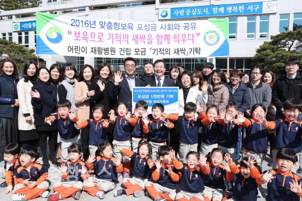 장종태 서구청장은 “보육 관계자들이 다 함께 노력한 성과를 뜻있는 곳에 쓰게 되어 기쁘다.”며, “일과 가정의 양립을 지원하고 적정시간에 아이를 맡길 수 있는 질 높은 보육환경 조성에 최선을 다하겠다.”고 밝혔다.