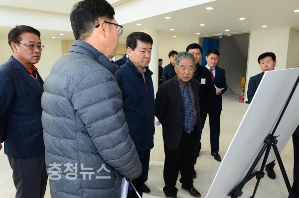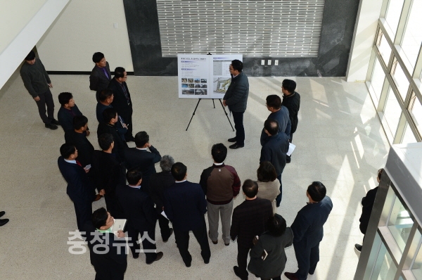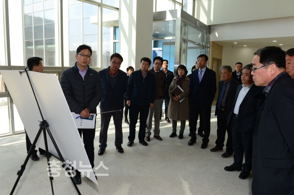 하광학 부군수를 비롯한 간부공무원 19명은 향후 시 승격에 따른 활용방안 등 미래적인 시안으로 완공을 앞둔 청사 내부를 살폈으며, 민원인의 눈높이에 맞춘 데스크의 높이조절, 보건소 구조물 구조개선, 샤워장 바닥 공사 불량에 따른 재시공, 태극기 게양 시 시야를 가릴 수 있는 조경수에 대한 이식 등이 거론됐다.