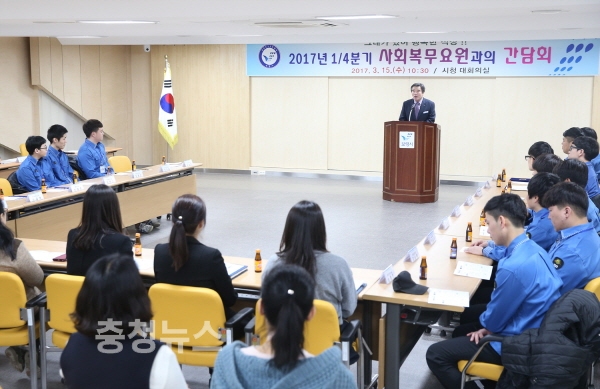 간담회에서는 김동일 시장이 성실 복무요원 2명에게 특별휴가증을 수여했고, 자연스러운 분위기에서 애로사항을 청취하고 노고를 치하했다. 이후 대전충남지방병무청 김은철 지도관의 복무교육으로 진행했다.