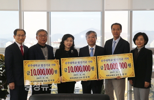 공주대학교(총장직무대리 김희수)는 15일 김상희 교수와 김종인 명예교수, ㈜신안산업개발 정지광 대표 등이 대학 발전과 인재 양성에 써 달라며 각각 1,000만원씩 발전기금을 잇달아 기탁해 화제가 되고 있다.