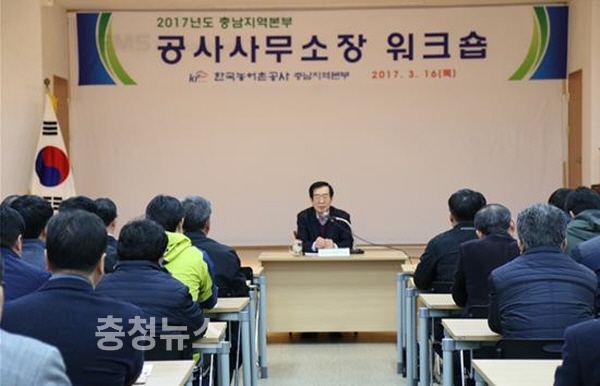 김병찬 충남지역본부장은 특별강의를 통해 “공사사무소장 워크숍을 통해 담당자 업무능력 향상은 물론 청렴하고 안전한 현장문화 정착을 위해 노력하기 바란다”며 “ 특히 해빙기를 맞아 시설물 안전점검에 더욱 주의를 당부하고 본격적인 영농기에 대비해 주요공정의 철저한 사전점검 등 현장관리에 최선을 다해달라”고 말했다.