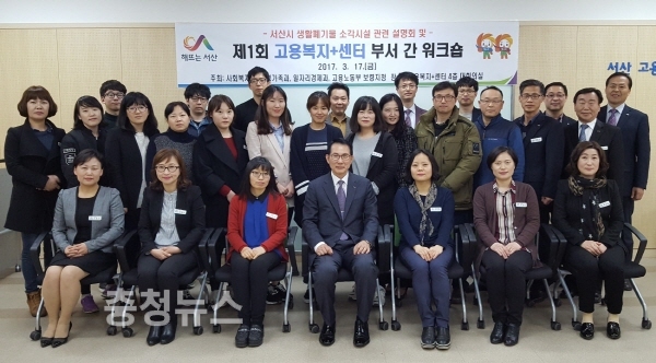 서산시는 17일 고용복지플러스센터에서 시 산하 5개 부서와 고용노동부 보령지청 서산고용센터 등 6개 기관 담당자 30여명이 참석한 가운데 ‘제1회 고용복지플러스센터 협업·화합·소통 워크숍”을 개최해 눈길을 끌고 있다.