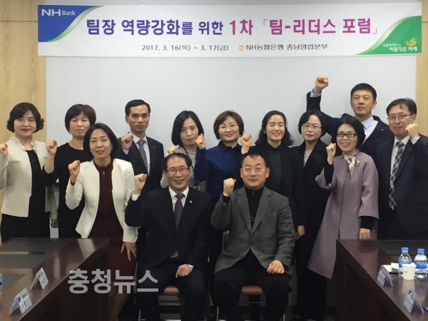 NH농협은행 충남영업본부(본부장 원종찬)는 3월 16일부터 17일까지 2일간 충남관내 4개 권역에서 영업점 수신팀장 39명을 대상으로 팀장 역략강화를 위한 「팀-리더스 포럼」 개최하였다.