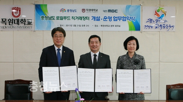 21일 본부회의실에서 목원대와 충남도· 대전MBC가 ‘충청남도 로컬푸드 직거래장터’ 개설‧운영에 관한 업무 협약식을 가졌다고 밝혔다.