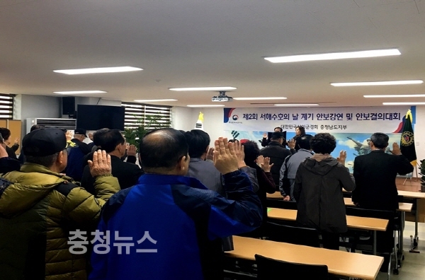 대한민국상이군경회 충청남도지부(지부장 백대기)는 21일 천안시 상이군경 충남복지회관 2층 강의실에서 제2회 서해수호의 날을 맞아 안보강연 및 안보결의대회를 실시하였다.