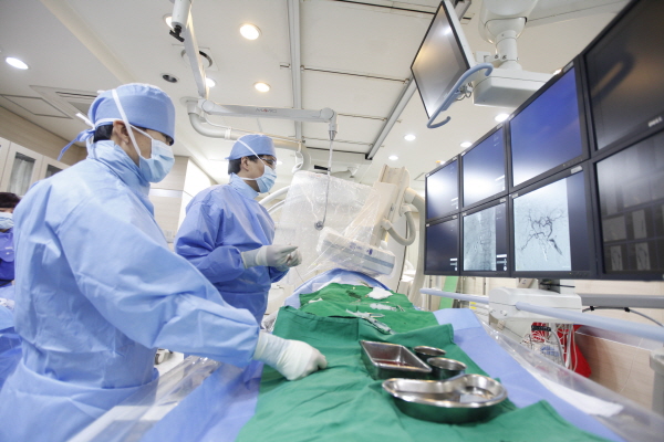 가톨릭대학교 대전성모병원 소화기내과 송명준, 인터벤션클리닉 김지창 교수로 구성된 간암 협진팀은 지난해 2월 중부권 최초로 방사선 색전술을 시행한 후 11월까지 총 9명의 간암 환자에게 방사선 색전술을 시행한 결과, 치료 반응이 좋은 것으로 나타났다고 밝혔다.