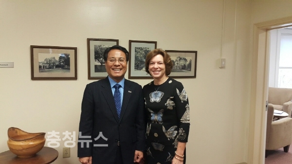 이덕훈 한남대 총장(왼쪽)과 바바라 미스틱 미국 윌슨칼리지 총장(오른쪽) 모습
