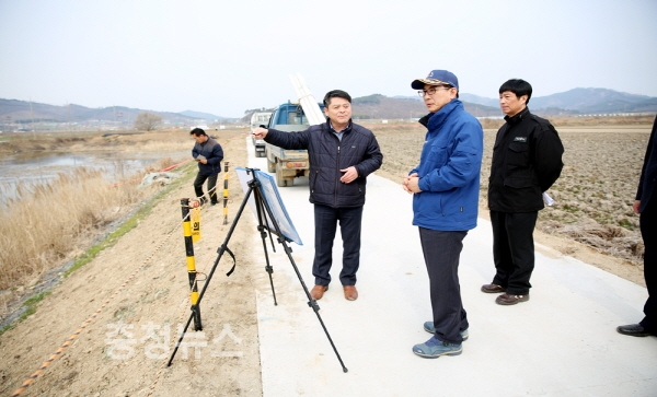 이 시장은 23일 고북면 신송저수지와 인지면 풍전저수지를 방문해 이 곳에서 추진되고 있는 용수개발사업 진행상황을 확인했다.
