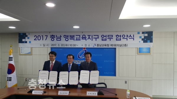 충남 아산시(시장 복기왕)와 충남도교육청은 지난 22일 충남 행복교육지구 업무협약을 맺고 향후 5년간 마을교육공동체 구축에 적극 동참하기로 했다.