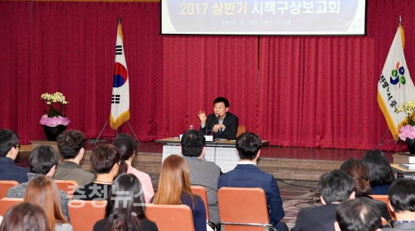 대전 중구(구청장 박용갑)는 22일 대회의실에서 새내기 공무원들의 창의적인 생각을 발굴하고 행정에 접목하기 위해 새내기 공무원과 함께 하는 ‘2017 상반기 시책구상 보고회’를 개최했다.