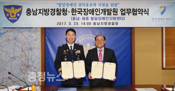 한국장애인개발원(원장 황화성) 충청남도발달장애인지원센터(센터장 김광선)와 세종특별자치시발달장애인지원센터(센터장 이정원)는 23일 충남경찰청 5층 중회의실에서 충남지방경찰청(청장 김재원)과 발달장애인 권익옹호와 지원을 위한 업무협약을 체결한다.