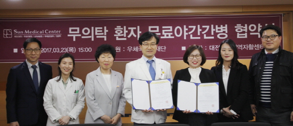 대전선병원은 23일 병원 회의실에서 한국지역자활센터협회 대전중구지역자활센터(센터장 김인희)와 ‘무의탁환자 무료 야간 간병사업’ 업무협약을 체결했다.