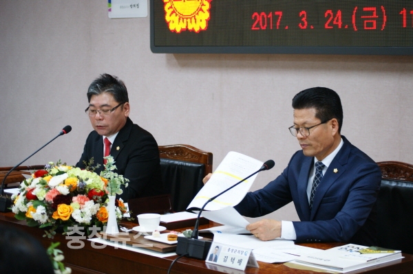 충남시군의장협의회(회장 이기성)가 24일 홍성군의회에서 열린 협의회 정례회에서 『이․통장 처우개선을 위한 수당 인상 건의안』을 채택했다.