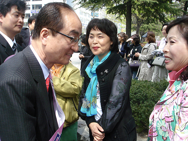 한나라당 이재선 후보는 선거 유세 첫 날, 여러분이 정권을 창출하고 싶으면 기호1번을 찍어달라고 서구 월평동 주공 아파트 1단지에 지지호소를 했다.