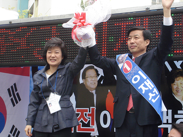 한편,이 후보는 월평동에서 거리유세를 마치고 박근혜 전 대표와 서구노인복지관으로 이동, 오후에는 삼천동 보라아파트와 샘머리 아파트에서 목요장터 거리유세를 펼칠고 금산과 서산으로 출발했다.
