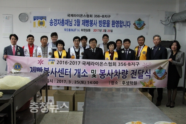 국제라이온스협회 356-B(대전)지구 송경자 총재는 지난 25일 대전시 서구 정림동 아동보호시설인 후생학원에서 제빵봉사센터 개소 및 봉사차량 기증식을 가졌다.