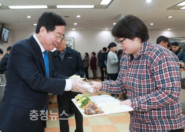 장종태 서구청장은 27일 민선 6기 출범 1,000일을 맞이해 구내식당에서 직원들에게 떡을 나눠주고, 격려하는 시간을 가졌다.