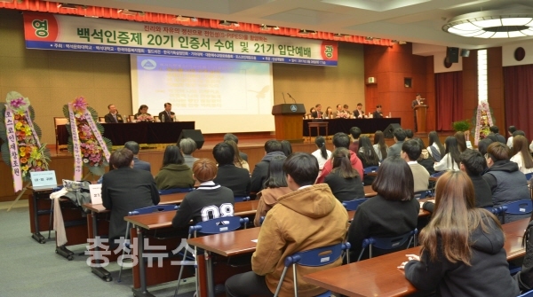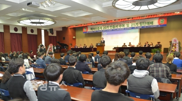 백석대학교(총장 최갑종)ㆍ백석문화대학교(총장 장종현) 인성개발원은 28일 교내 본부동 국제회의실에서 자체 개발 인성프로그램인 ‘백석인증제’ 제20기 인증서 수여식 및 제21기 입단식을 개최했다.