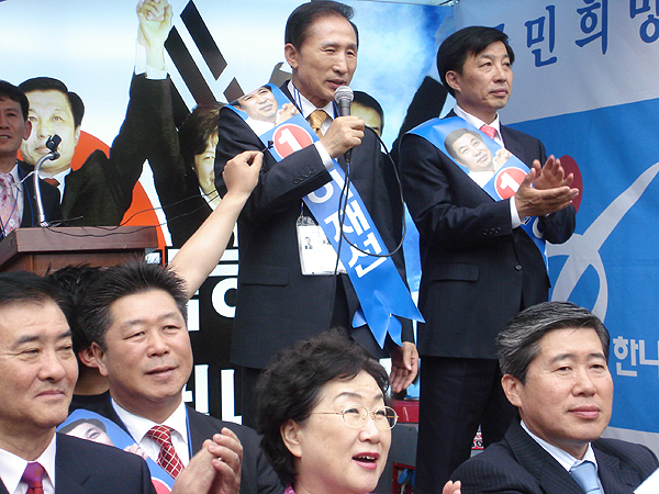 대전 둔산 지역은 보선의 분수령인 주말 21일22일 한나라당 대선주자 이명박, 박근혜 두 후보들은 이재선 후보에 대한 지지호소를 하며 월평동 백합4거리, 둔산 영진 공원으로 출동 막판 표심잡기에 나섰다.