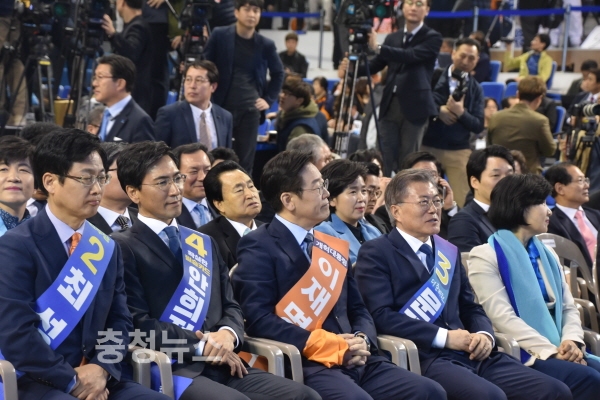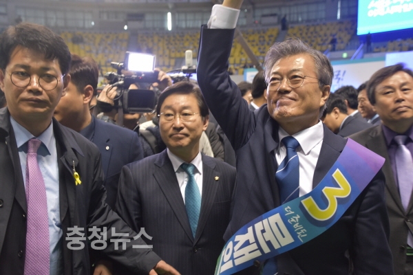 특히 문재인 후보는 "충청이 안희정이라는 걸출한 지도자를 잘 키워주셨다"며 "그러나 우리도 10년, 15년 집권준비를 해야 한다. 이번엔 제가 정권교체 문을 열겠다"고 밝혔다.