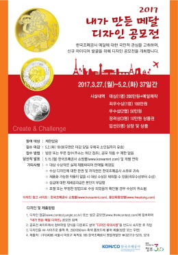 한국조폐공사(사장 김화동)는 메달에 대한 국민적 관심을 높이고 메달 수집문화도 활성화시키기 위해 ‘2017 내가 만든 메달 디자인 공모전’을 개최한다.