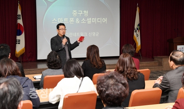 대전 중구(구청장 박용갑)는 30일 구청 대회의실에서 스마트 폰을 활용한 SNS 활성화를 위해 200여 명의 직원들이 참석한 가운데 ‘스마트 폰 활용교육’을 실시했다.