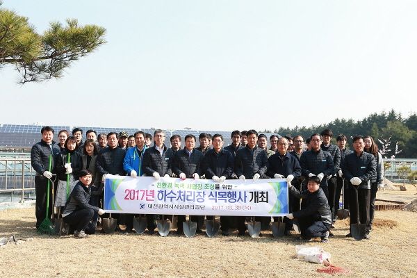 이번 식목행사에는 공단 임직원 50여명이 참여하여 온실가스 저감 및 악취 예방을 위해 하수처리장 내부에 반송 등 수목 3,090주와 꽃묘 1,000본을 한밭수목원에서 무상분양 받아 식재했다.
