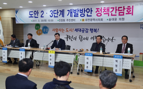 송대윤(유성구1, 더불어민주당) 시의원이 진행한 이 간담회에서는 도안 2․3단계의 진행사항에 대한 대전시 주택정책과장의 보고를 시작으로 향후 개발의 해결과제 및 개발방안에 대하여 토론자와 지역주민들의 열띤 토론이 이어졌다.