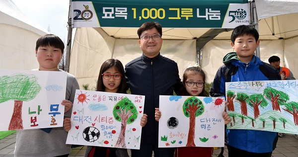 산림청은 제72회 식목일을 앞두고 31일 대전시티즌과 안양FC와의 경기가 열리는 대전월드컵경기장을 찾아 경기장을 찾은 시민들에게 금강송 묘목을 나눠주며 산불예방 및 산림청 개청 50주년을 홍보했다.