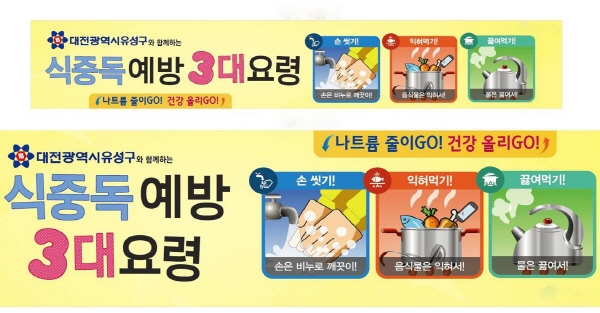 우선 유성구 주요 노선 시내버스 8대에 손씻기, 끓여먹기, 익혀먹기 식중독예방 3대 실천요령과 생활식단 나트륨 줄이기 운동을 4월부터 3개월 동안 중점 홍보한다.