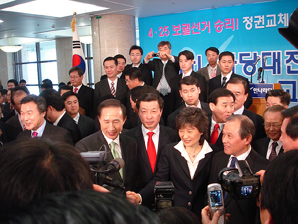 이명박 전시장측도 경선에서의 자신들에게 불리한 룰을 갖고는 경선을 해보나 마나라는 계산이며 차라리 4.25보궐선거에서 패한 지도부 총 사퇴라는 호재를  그냥 덮어 버리는 누를 범 하지 않을 것이란 판단이 지배적이다.