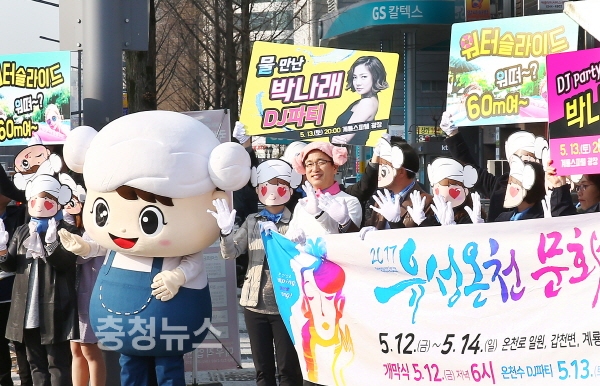 대전 유성구가 오는 5월 12일부터 3일간 온천로 일원에서 열리는 유성온천문화축제의 홍보를 위해 직접 거리로 나섰다.