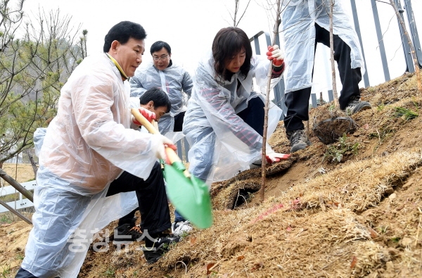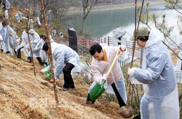 이번 나무심기 행사는 뿌리공원 성씨조형물 추가 조성에 따라 나지로 노출된 지역의 경관개선을 위해 직원 200여 명이 참여한 가운데 산수유와 산딸나무 등 2종 700본을 식재했다.
