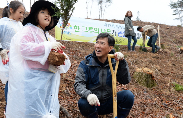 도민과 안희정 지사, 도의회 김응규·장기승 의원 등 300여명이 참가한 가운데 열린 이날 나무심기는 ‘녹색의 꿈, 우리의 작은 손에서 이루어집니다’를 주제로 진행됐다.