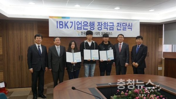 이날 장학금 수여식은 기업은행 대전역지점 이성국 지점장, 김희태 팀장 및 대학 관계자들이 참석한 가운데 디지털콘텐츠과 임희영 학생 외 4명의 학생에게 총 500만원의 장학금과 장학증서를 전달했다.