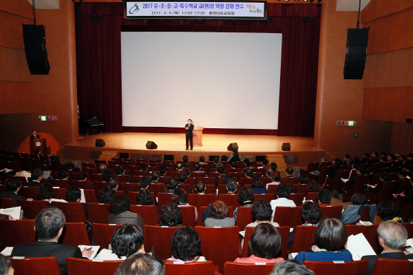 충남도교육청(교육감 김지철)은 학교관리자의 특수교육 및 학교 급식 안전에 관한 역량을 강화하기 위해 6일 충남도청 문예회관에서 유․초․중․고․특수학교 교장, 교감 500여명이 참석한 가운데 통합교육 및 식중독 예방교육을 실시했다.