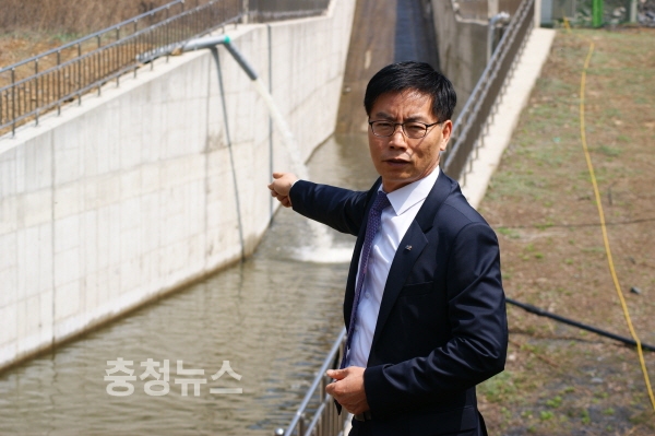 하천수 담수사업을 설명하고 있는 유상선 지사장