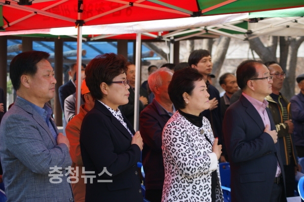 좌로부터 청양군의회 심우성 의원, 임동금 의원, 구기수 총무위원장, 이석화 청양군수