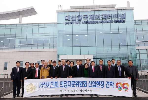 이날 견학은 의원을 비롯해 자문위원, 관계자 등 30여 명이 참석한 가운데 대산항 국제여객터미널과 현대오일뱅크를 방문했다.