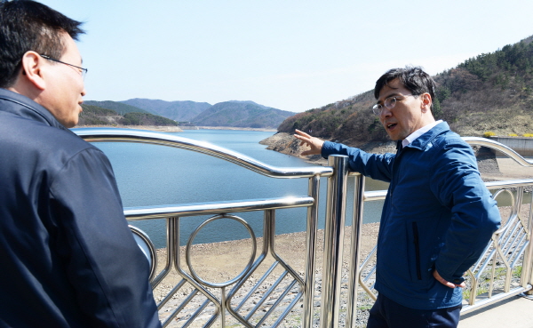 충남 서부권 8개 시·군의 생활·공업용수원인 보령댐이 ‘경계 단계’에 진입하며 도수로를 통해 금강 물을 공급받고 있는 가운데, 안희정 지사가 10일 보령댐을 찾아 가뭄 대응 상황을 점검했다.