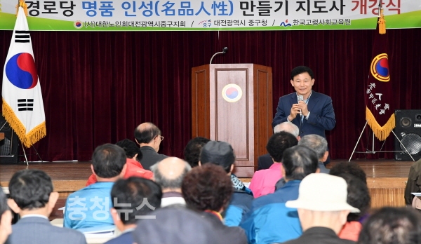대한노인회 중구지회(회장 이인상)는 11일 지회 대강당에서 경로당 어르신 명품인성 만들기 교육 개강식을 90여 명의 회원이 참석한 가운데 개최했다.