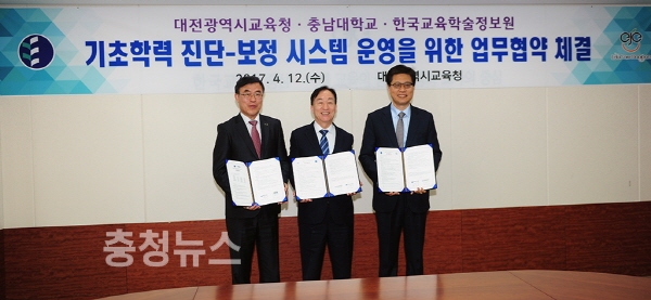 대전시교육청(교육감 설동호)은 12일 대전교육청 중회의실에서 충남대학교, 한국교육학술정보원과 「기초학력 진단-보정 시스템의 효율적인 운영을 위한 업무협약」을 체결했다.