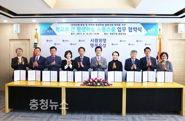 대전 유성구(구청장 허태정)는 12일 평생학습 활성화를 위해 관내 총 9개 학교와 ‘학교로 간 평생학습 소통스쿨’ 협약을 체결했다고 밝혔다.